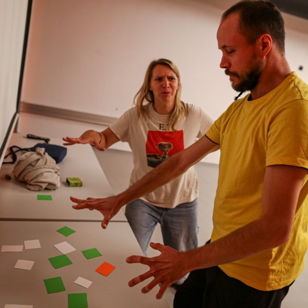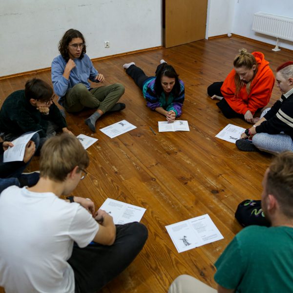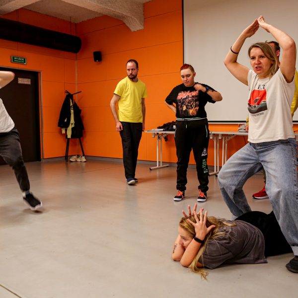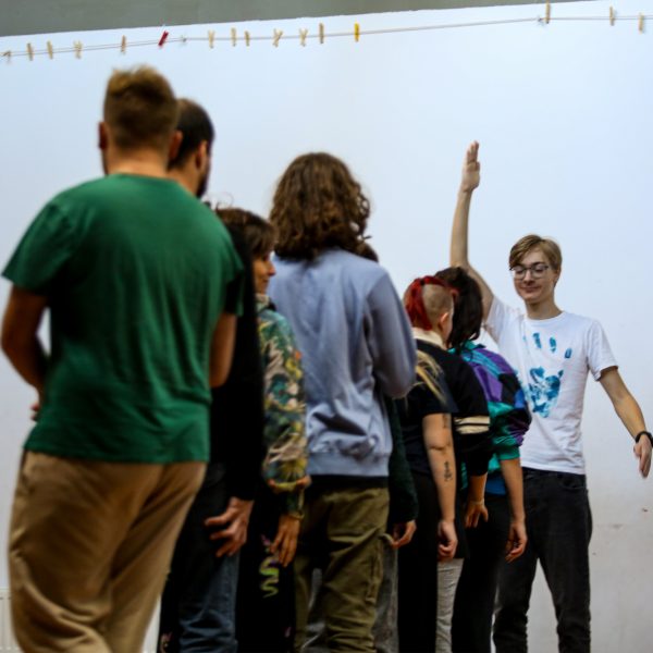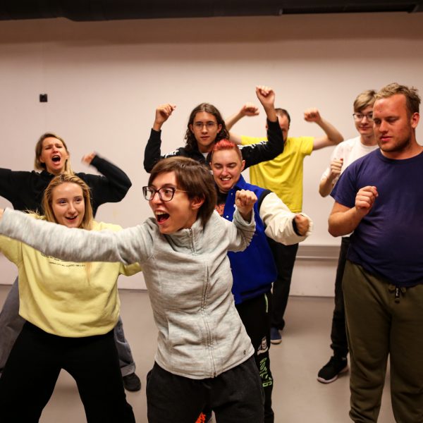 Jesień była dla nas niezwykle twórczą i intensywną porą roku. W przyjaznych przestrzeniach Teatr CHOREA doskonaliliśmy swoje umiejętności aktorskie. Poprawialiśmy kondycję fizyczną, rozwijaliśmy swoją wrażliwość na partnera a także na grupę. Szlifowaliśmy nasze możliwości dykcyjne i wokalne. Interpretowaliśmy wers po wersie fragmenty tekstu. Tworzyliśmy niesamowite historię pełne losowości i humoru. Wykonywaliśmy rzeźby i odtwarzaliśmy ich kształty. Niekiedy w naszych scenach stawaliśmy pełnym harmonii organizmem, a czasem pełną chaosu maszyną. Wszystko po to by przygotować dla Was coś niezwykłego – pokaz pracy inny niż wszystkie dotychczas. Coś wyjątkowego, coś bardzo naszego, coś dosłownie Bez Nazwy! Już niedługo finał.